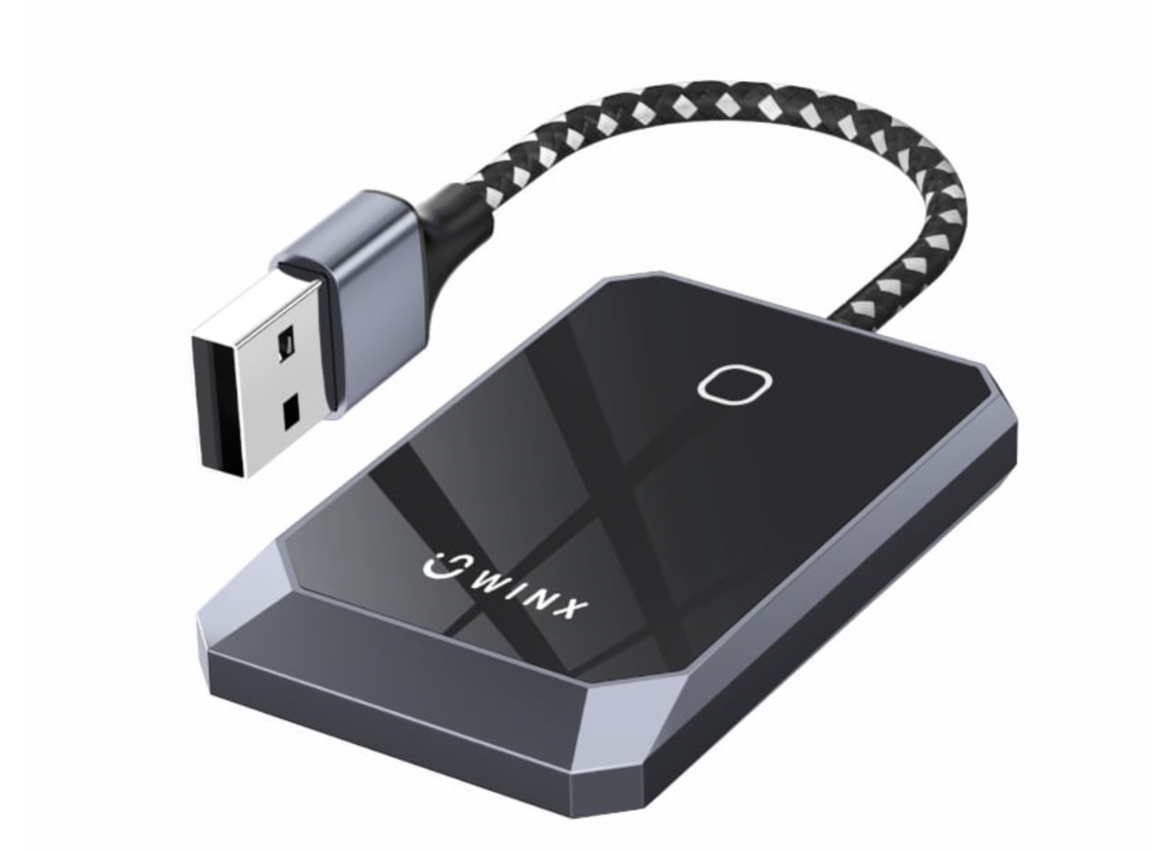 The WINX CONNECT Wireless Android Auto & CarPlay Adapter is designed to make your current wired Carplay or Android Auto entertainment system wireless. to seamlessly integrate CarPlay and Android Auto into your car’s entertainment system. With its compact design, the adapter provides a reliable wireless solution for accessing the navigation display, audio, and hands-free communication while on the road and connects via Bluetooth then Wi-Fi for a stable connection. Manufactured from aviation aluminium and 6H explosion-proof tempered glass, allowing for fast heat dissipation and improved performance with a soft woven nylon cable. Ideal solution for cars that have existing wired setups for CarPlay and Android Auto.